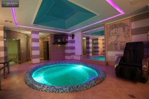 - 8-местный номер с финской и турецкой сауной, бассейном с гейзером и подсветкой.