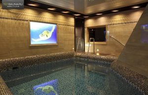 - Большая парная с бассейном. Имеется массажное кресло, караоке, телевизор. Стоимость: 1200-1400 руб./час.