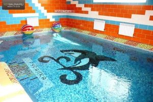 - 10-местный номер с финской сауной и большим бассейном с бирюзовой подсветкой, комнатой отдыха. Стоимость: 2000 руб./час.