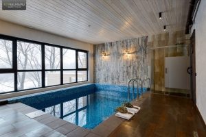 - Двухкомнатный номер. К услугам гостей здесь предлагают экзотический бассейн с водными горками, дровяную парную, банкетный зал, из которого вы будете наблюдать за отдыхающими в бассейне и делать забавные фотографии на память. Также в номере есть аэрохоккей, музыкальный центр.
